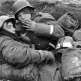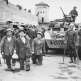 Солдаты королевского полка шотландских горцев «Black Watch» покупают посуду у французской женщины.