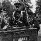 Хирурги 5-го американского госпиталя (справа налево) капитан Гайбриэл Рейер (Gabriel Reyer), майор М. Томас (M. Thomas) и Томас Салливан (Thomas M. Sullivan) меняют повязку потерявшего глаз капитана морской пехоты США в боях в Нормандии.