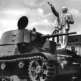 Военнослужащие 743-го танкового батальона 30-й пехотной дивизии армии США у системы залпового огня Т34 «Каллиопа» (T34 Calliope), установленной на немецкий бронетранспортер Sd.Kfz. 251 Ausf. D.
