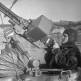 Американский десантник в районе высадки близ местечка Нёвиль-о-Плен (Neuville-au-Plain) во Франции. На переднем плане — французская танкетка Renault 31R, точнее, то, что от неё осталось. Скорее всего, танкетка, захваченная немцами во время завоевания Франции в 1940 году, использовалась для охраны аэродрома и была уничтожена во время его захвата десантниками. На заднем плане виден американский десантный планер Waco CG-4.