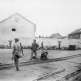 Рядовой первого класса Рез Хестер из 7-го кинологического взвода 25-го полка морской пехоты (Pfc. Rez P. Hester, 7th War Dog Platoon, 25th Regt.) отдыхает в яме из темного вулканического песка, пока его как его собака, доберман по кличке Бутч (Butch), несет караул.