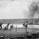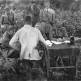 Японские морские пехотинцы в противогазах на улице района Жабей в Шанхае. На переднем плане — солдат с 6,5-мм пулеметом Тип 11.