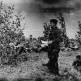 Чернокожие американские пилоты 99-й эскадрильи, более известной, как «Пилоты из Таскиги» на фоне самолета-истребителя P-40 обсуждают проведенные бои. К югу от Рима.