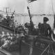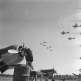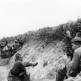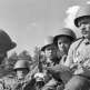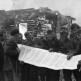 Бойцы 84-й стрелковой дивизии с красным флагом у Монумента Славы в освобожденной Полтаве.