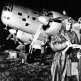 Бойцы 84-й стрелковой дивизии с красным флагом у Монумента Славы в освобожденной Полтаве [1]