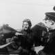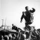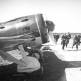 Позади движется командно-штабная машина M20. Справа солдат пишет текст на плакате: «Мост Трумана — врата Берлина на Эльбе. Любезность 83-й пехотной дивизии «Тандерболт» («Удар молнии»). Построен 295-м инженерным батальоном и 992-й мостовой ротой».