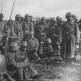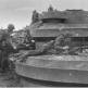 Немецкие полицейские охраняют железнодорожный мост на оккупированной территории СССР. Справа находится дом, окруженный стеной из бревен, в котором располагалась охрана.