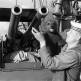 Немецкие мирные жители, доставленные американскими солдатами, осматривают тела узников концлагеря Бухенвальд, погруженные в автоприцеп.