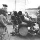 Справа от радиста находится всеволновый радиоприемник СВД-9 1940 года выпуска с прямоугольной шкалой.