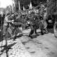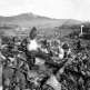 Немецкие солдаты выталкивают из грязи мотоцикл BMW R75 в районе Дона
