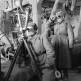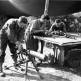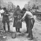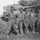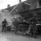 Немецкий мотоциклист у горящей постройки где-то в СССР
