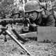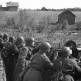 Солдаты Войска Польского в кузовах грузовиков (американского производства) со 120-мм минометами на прицепе проезжают на параде в освобожденном Люблине. Справа на трибуне стоят советские и польские офицеры.