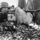 Бойцы и командиры РККА беседуют с жительницей освобожденного Ржева.