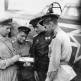 Встреча Эриха Хартмана с немецким летчиком Гансом Ханом после возвращения из плена в пограничном пункте Херлемсхаузен (Herleshausen).