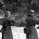 Советские бойцы ведут уличный бой в Велау (Wehlau, ныне поселок Знаменск в Гвардейском районе Калининградской области, РФ). Слева в кадре разрушенное здание с вывеской магазина — «Курт Обермюллер», магазин находился в доме №5 на Рыночной площади (Obermüller, Kurt, Kaufmann, aus Wehlau, Markt. Nr. 5).