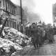 Немецкие солдаты на улице в Сталинграде проходят мимо сгоревших трамваев