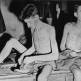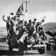 Пересадка раненных и перемещение тел погибших американских матросов корабля береговой охраны США «Менгес» (USS Menges DE-320) на буксирное судно.