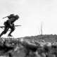 Американский морской пехотинец бежит под огнем по «Долине смерти» на Окинаве.