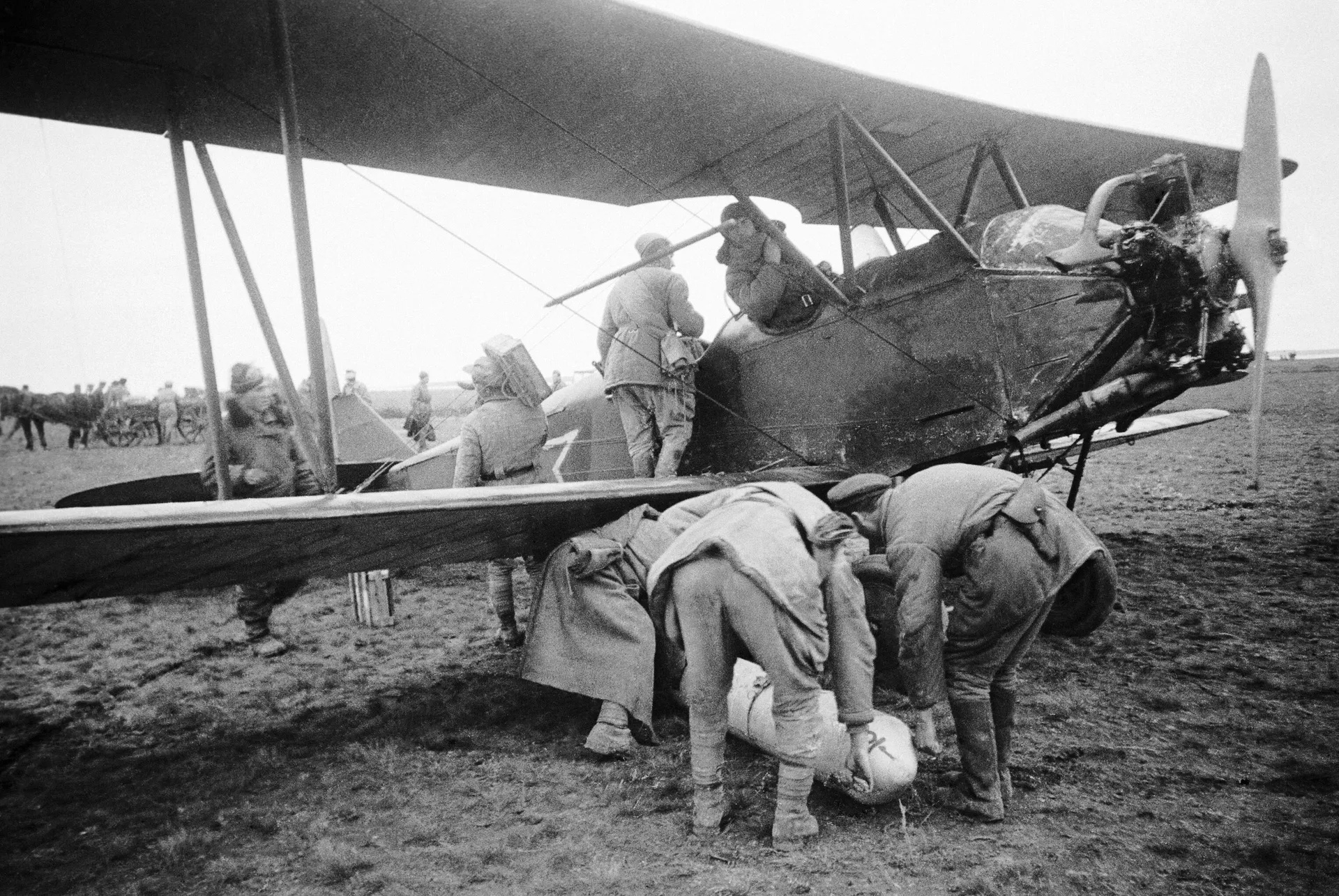 Подготовка советского самолета У-2 к вылету в Николаевской области