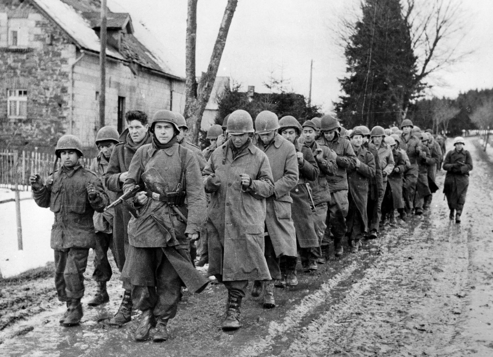 Колонна пленных 99-й дивизии армии США на марше в бельгийской деревне Мерльшайд [2]