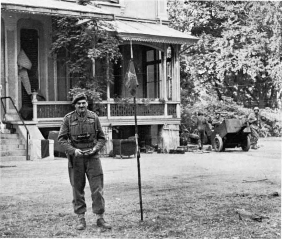 Британский генерал-майор Рональд Уркхат (Ronald Walton Urquhart, 1906–1968) у штаба в отеле «Хартенштейн» (Hartenstein) в голландском городке Остербек (Oosterbeek).