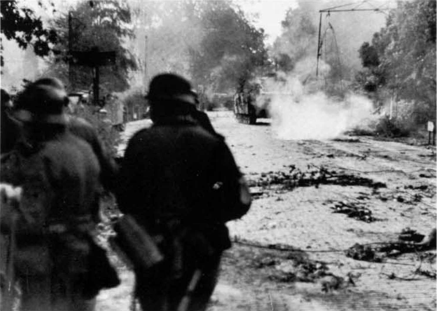 Техника 3-й батареи 280-й бригады штурмовых орудий вермахта при поддержке гренадеров в ходе боя на улице Арнема [7]
