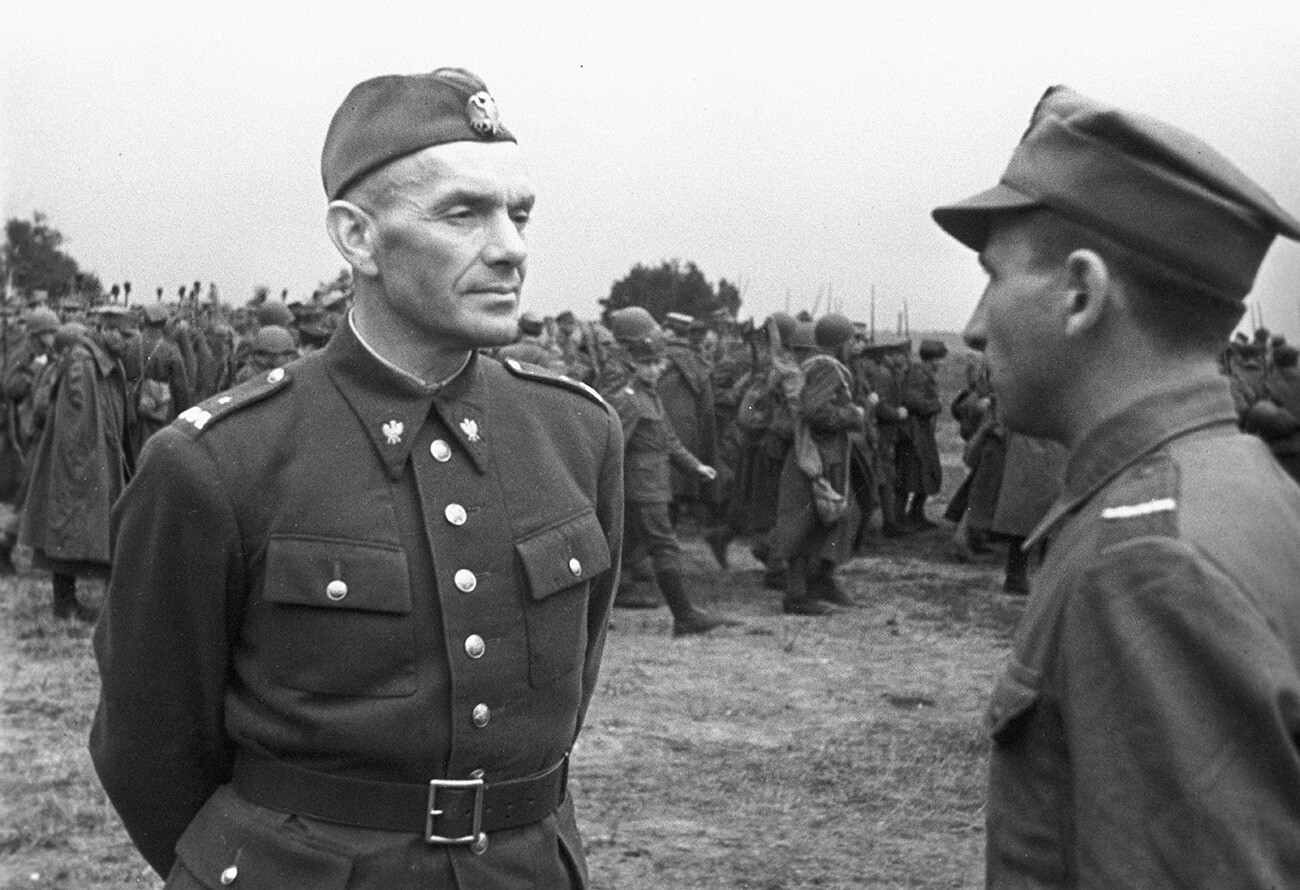Командир 1-й польской пехотной дивизии имени Тадеуша Костюшко генерал бригады Зигмунд Хенрик Берлин (Zygmunt Henryk Berling, 27.04.1896 — 11.07.1980) слушает доклад подчиненного во время формирования дивизии под Рязанью.