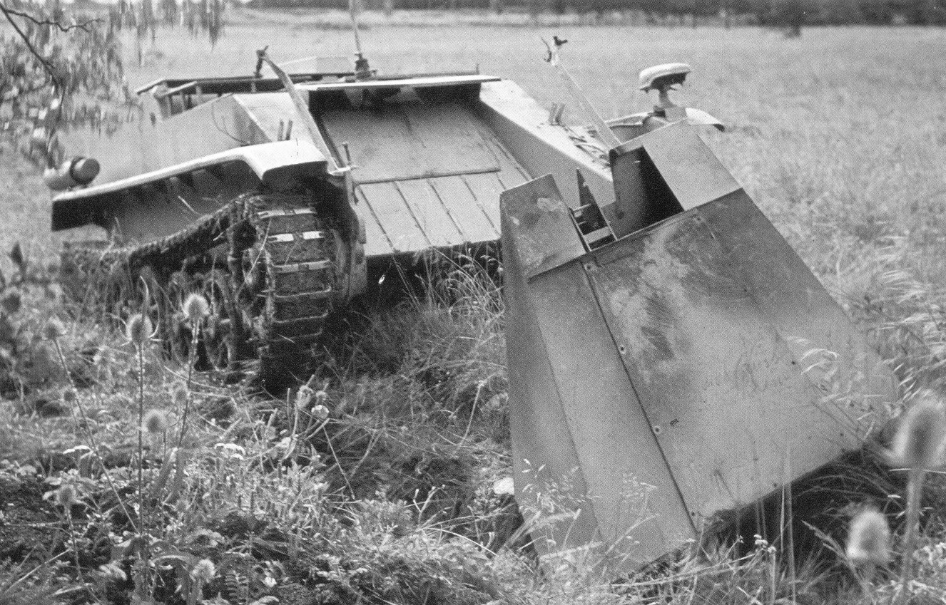 Немецкая дистанционно управляемая подрывная машина «Borgward IV» (Schwerer Ladungsträger B IV, Sd.Kfz.301) сбрасывает заряд взрывчатого вещества. Заряд находился в трапециевидном контейнере, который сбрасывался на землю, соскальзывая по наклонной поверхности корпуса машины. Масса взрывчатки составляла 450 кг.