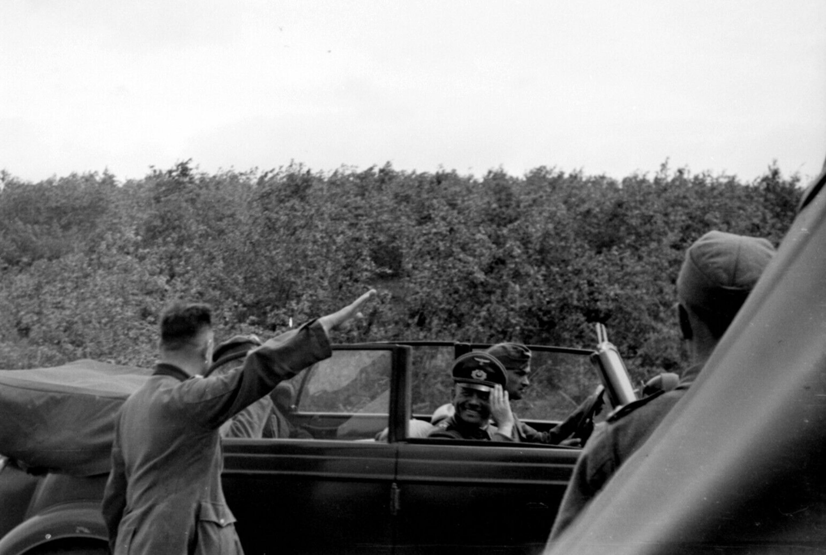 В кадре штабной автомобиль Horch 901 Kfz.21 с регистрационным номером WH-656652. Предположительно, место съемки в районе р. Березина, Смоленская область.