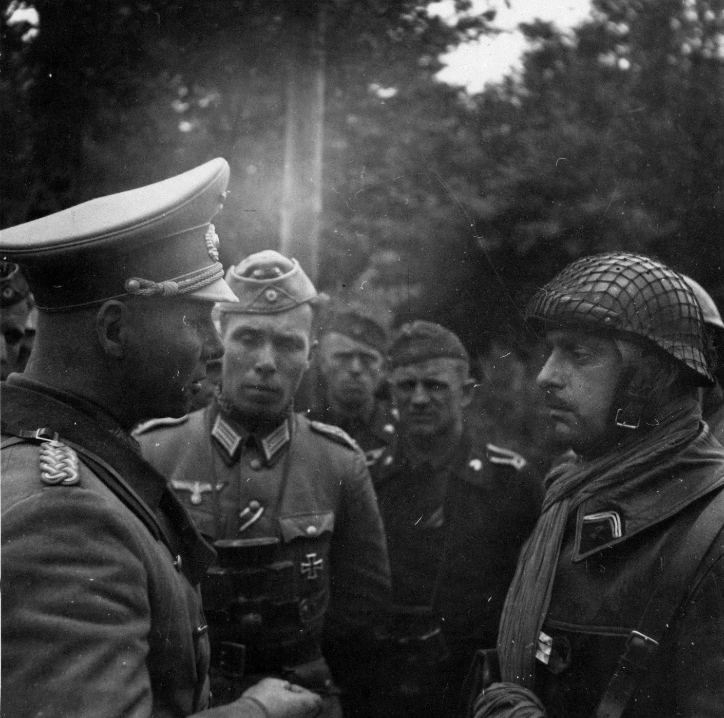 Командир 7-й танковой дивизии генерал-майор Эрвин Роммель (Johannes Erwin Eugen Rommel, 1894 – 1944) допрашивает пленного французского танкиста.