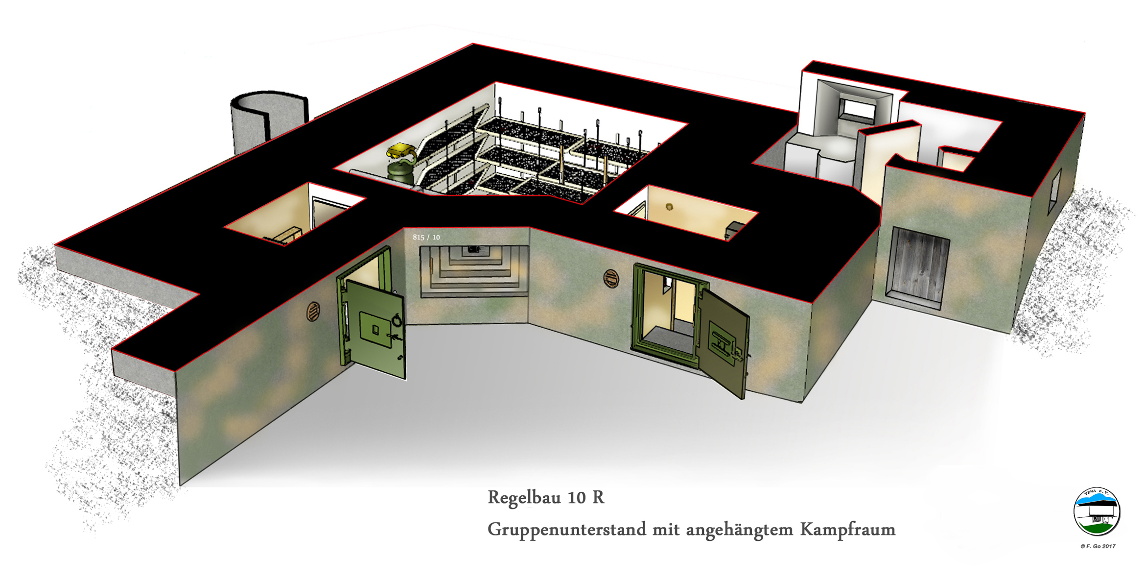 Очень может быть, что это один из пулемётных ДОТов совмещённых с убежищем на 10 человек. И вход-проём похож на боковой вход в пулемётный каземат и теория вероятности подсказывает, так как это было самое массовое сооружение Западного вала — линии Зигфрида коих было построено около 3 тыс. штук.