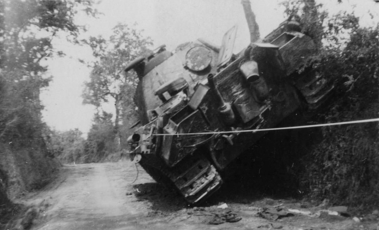 Офицеры 22-го пехотного полка 4-й пехотной дивизии США осматривают немецкий танк Pz.Kpfw. V «Пантера» 2-го танкового полка СС 2-й танковой дивизии СС, подбитый в Нормандии.