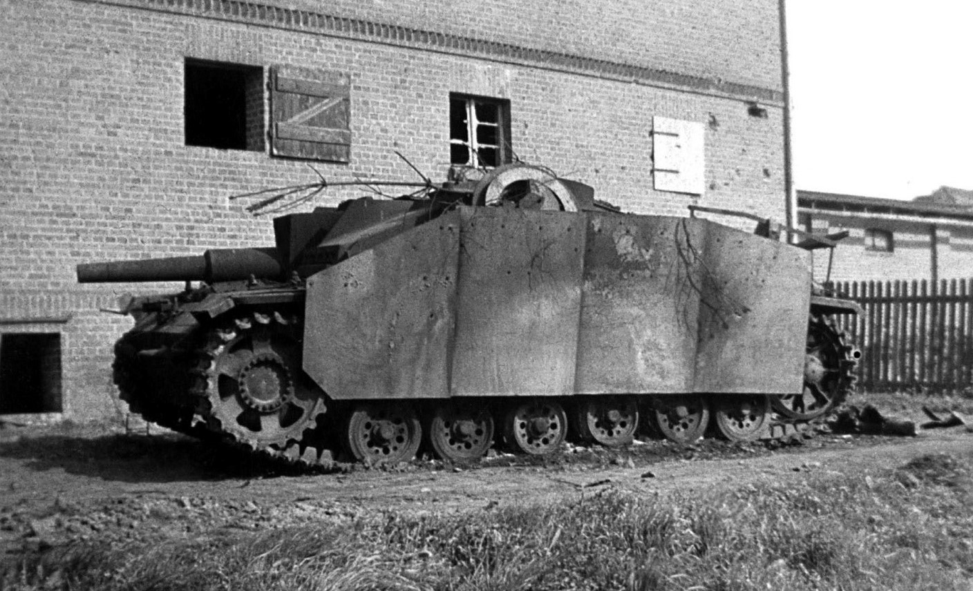 Немецкая САУ StuH. 42, подбитая выстрелом РПГ «Базука»