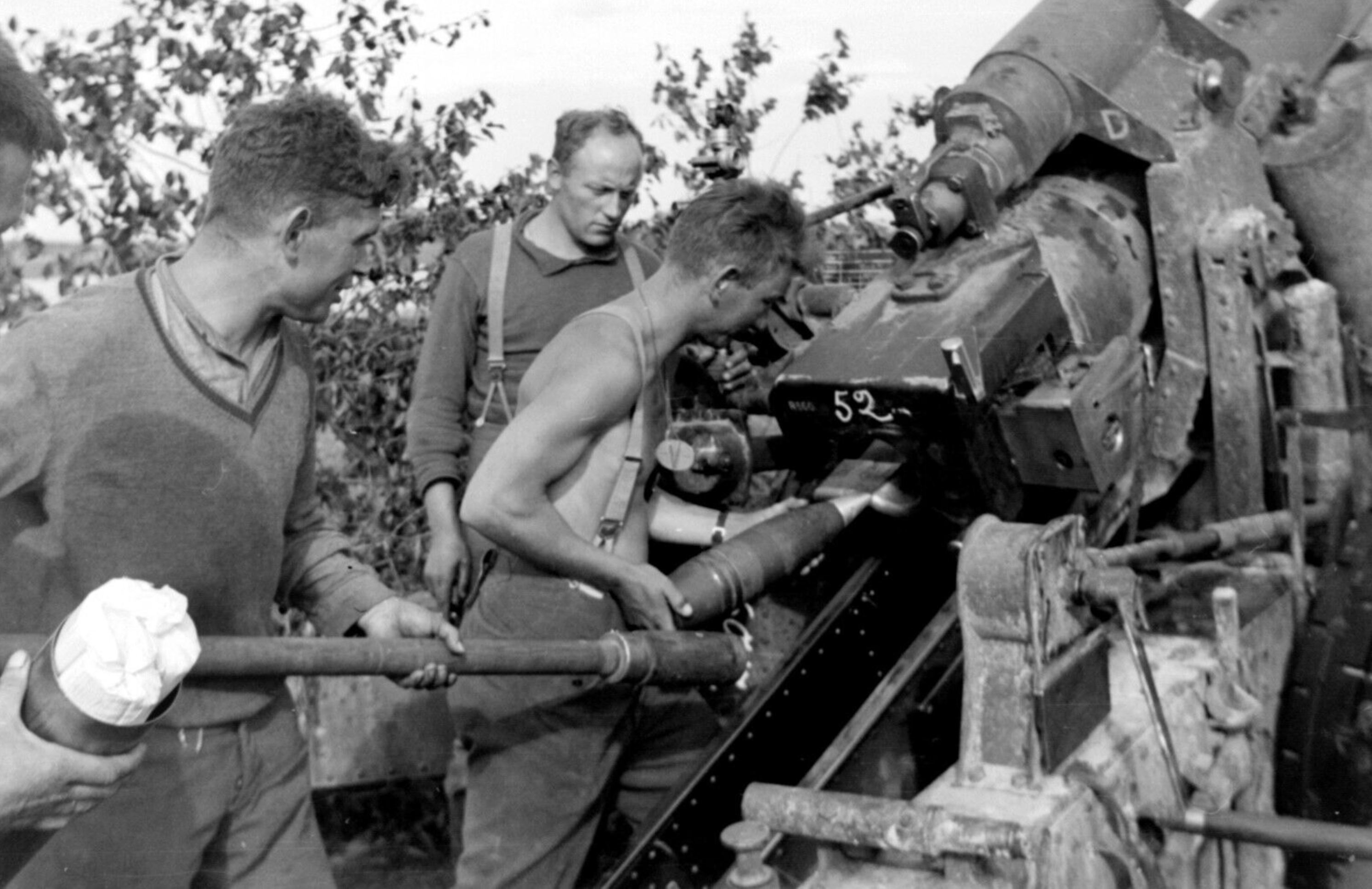 Расчет заряжает немецкое тяжелое полевое орудие 10 cm sK18 [3]