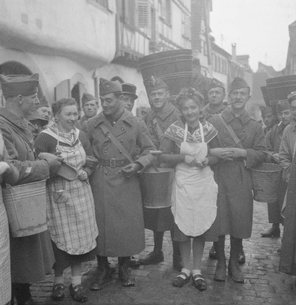 Французские солдаты с местными жителями на празднике сбора винограда в Эльзасе [2]