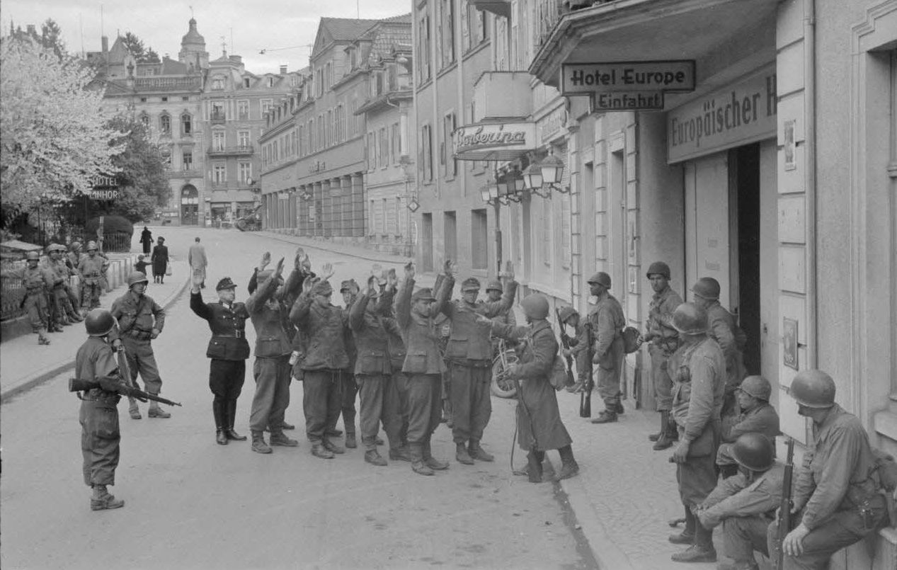 Немецкие солдаты гарнизона Баден-Бадена сдаются французским войскам