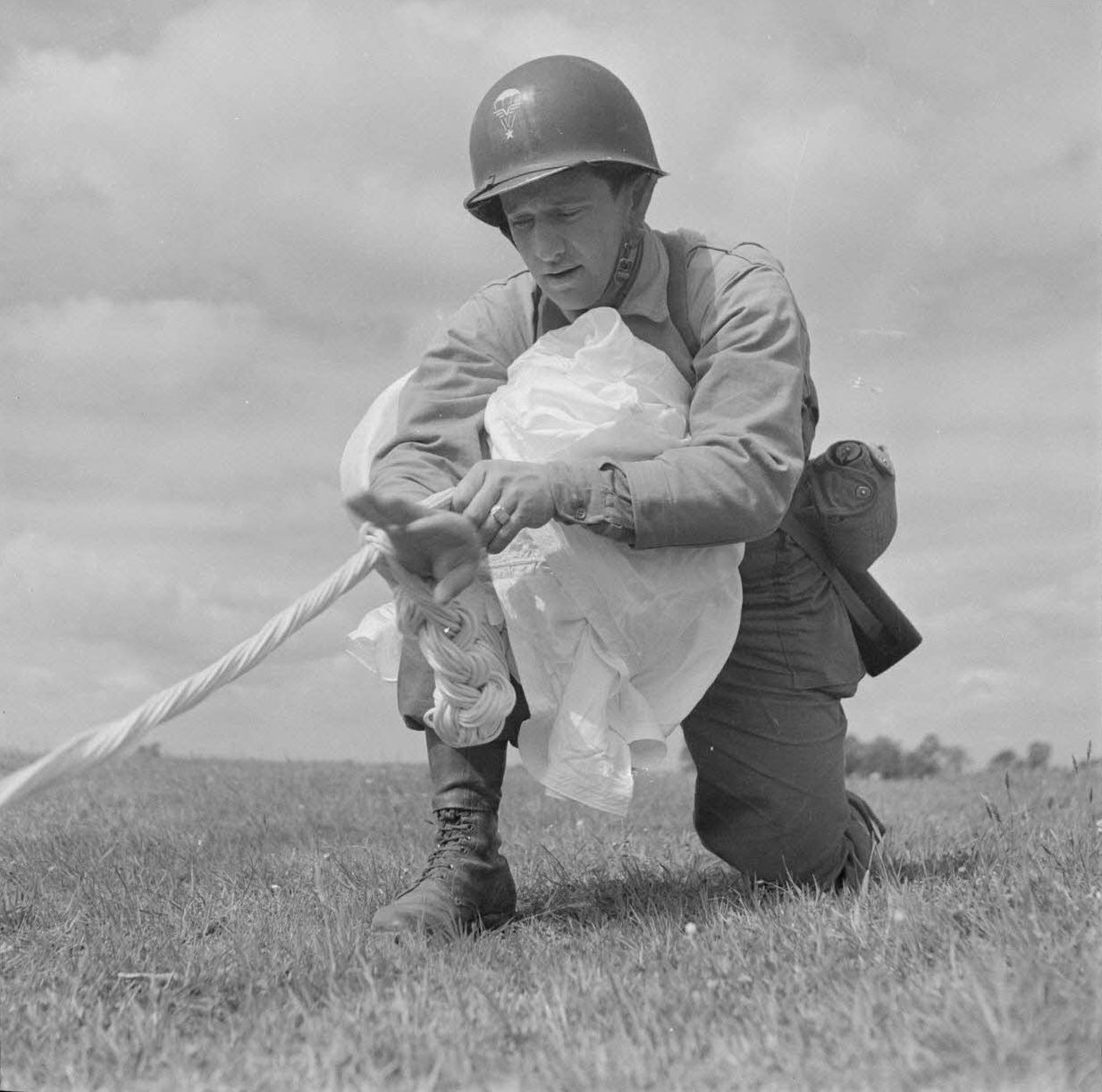 Французский десантник складывает парашют после приземления [2]