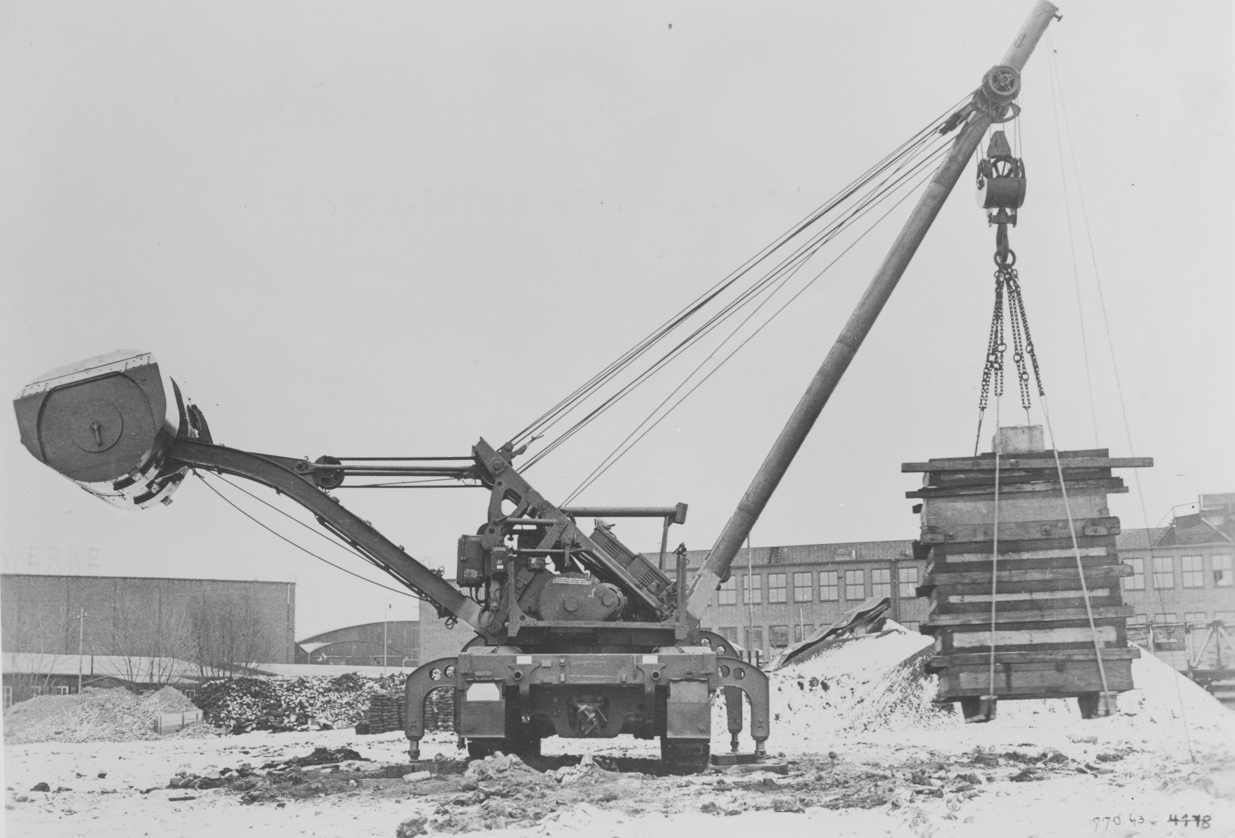 Немецкий тяжелый полугусеничный кран Sd.Kfz. 9/2 (Drehkrankraftwagen (Hebekraft .10t), во время испытаний. Машина была создана на базе тяжелого полугусеничного тягача Sd.Kfz. 9 посредством установки на него бензоэлектрического крана оригинальной конструкции фирмы DEMAG грузоподъемностью 10 тонн и являлась достаточно редким экземпляром техники. Стрела крана имела сборно-составную конструкцию. Машина была принята на вооружение в 1942 году. В основном использовалась в ремонтных подразделениях танковый частей.