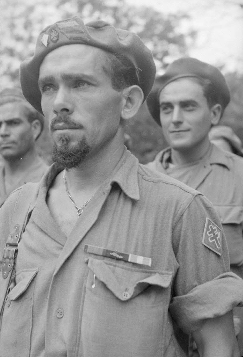 Французский старший капрал 13-й полубригады Иностранного легиона (13e demi-brigade de Légion étrangère, 13e DBLE), входившей в состав 1-й французской свободной дивизии (1re division française libre, 1re DFL), на смотре в честь освобождения Дижона (Dijon).