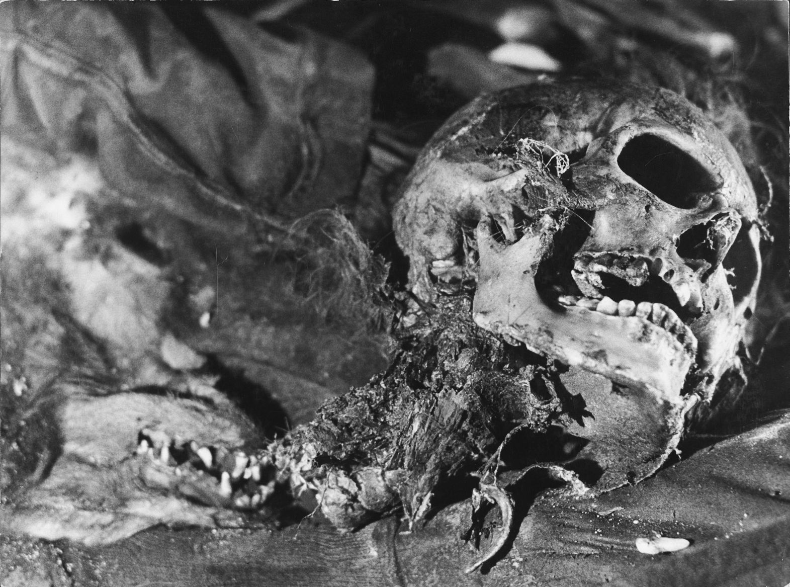 Останки немецкого мирного жителя и собаки, погибших при авианалете 13-14 февраля 1945 года бомбардировщиков союзников на Дрезден.