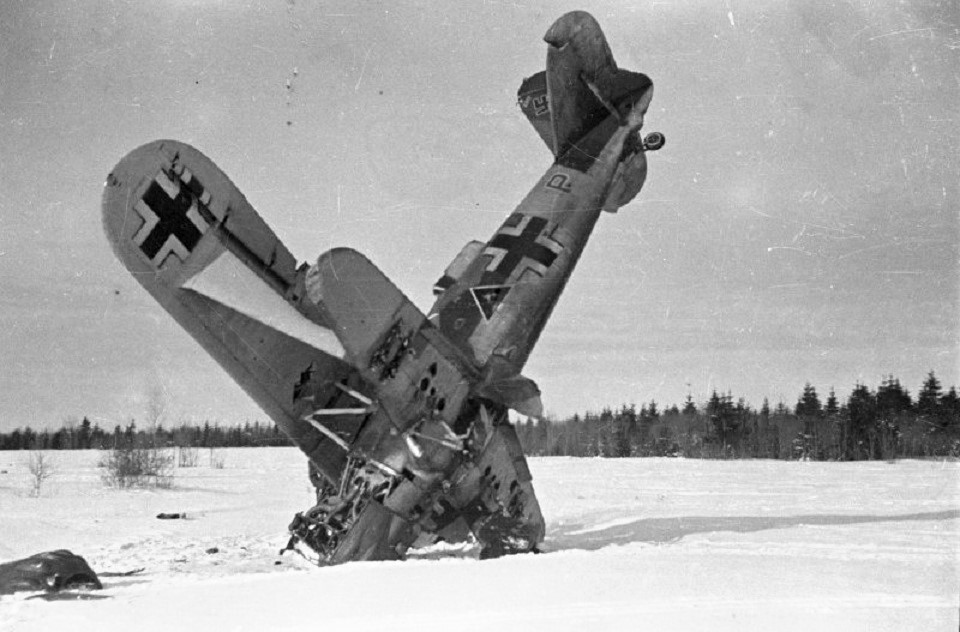 Немецкий штурмовик Henschel Hs-123 (№ 2318) 10-й штурмовой эскадрильи 2-й учебно-боевой эскадры (10.(Sch)/LG2), сбитый 22.11.1941 г. советской зенитной артиллерией и совершивший аварийную посадку в районе села Дуброва (современное Нововолково) Рузского района Московской области, под охраной красноармейца. Летчик сумел спастись.