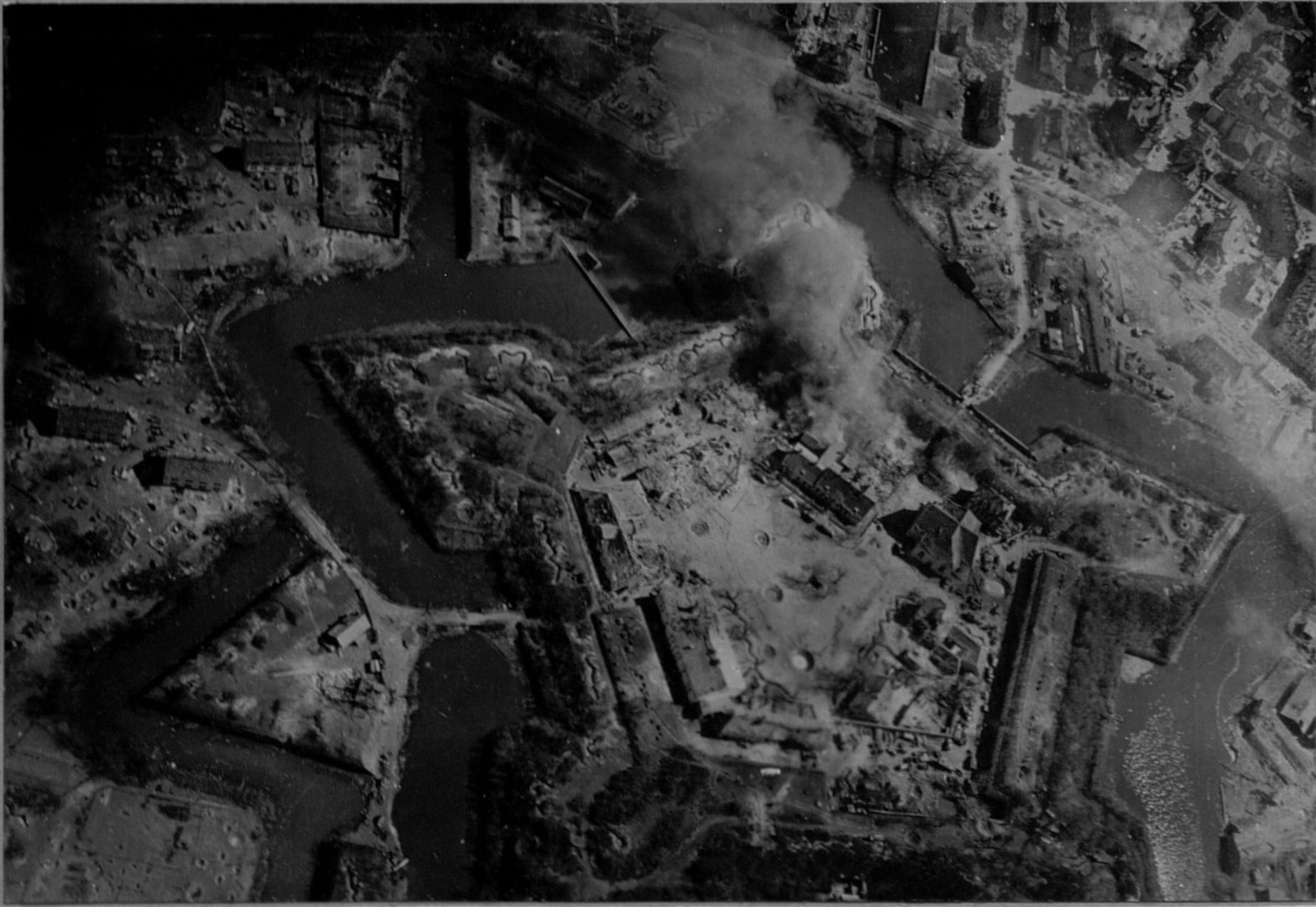 Фотоконтроль работы бомбардировщиков Пе-2 6-й Гвардейской бомбардировочной авиадивизии по цитадели «Пиллау» (современный город Балтийск Калининградской области).