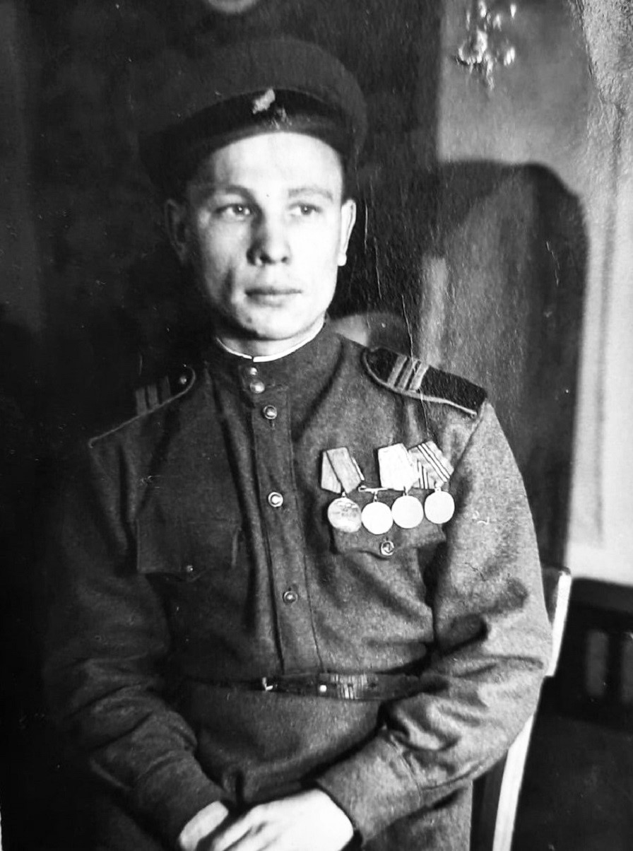 Портрет старшего вычислителя батареи 89-й тяжелой гаубичной артиллерийской бригады разрушения 12-й артиллерийской дивизии прорыва 3-й ударной армии 1-го Белорусского фронта сержанта Бориса Романовича Чернуся (1923 г.р.).