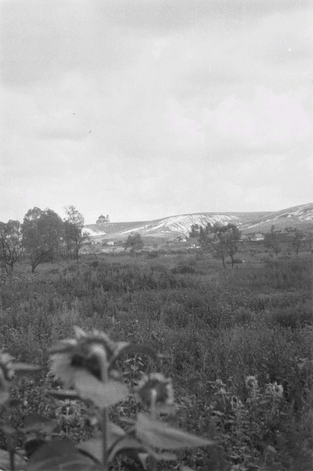 Вид на храм Покрова Пресвятой Богородицы в селе Шопино (под Белгородом) в пойме реки Липовый Донец. Сам храм находится на горе, чуть в стороне от села, на военных картах она обозначена как «высота 225,9 метра».