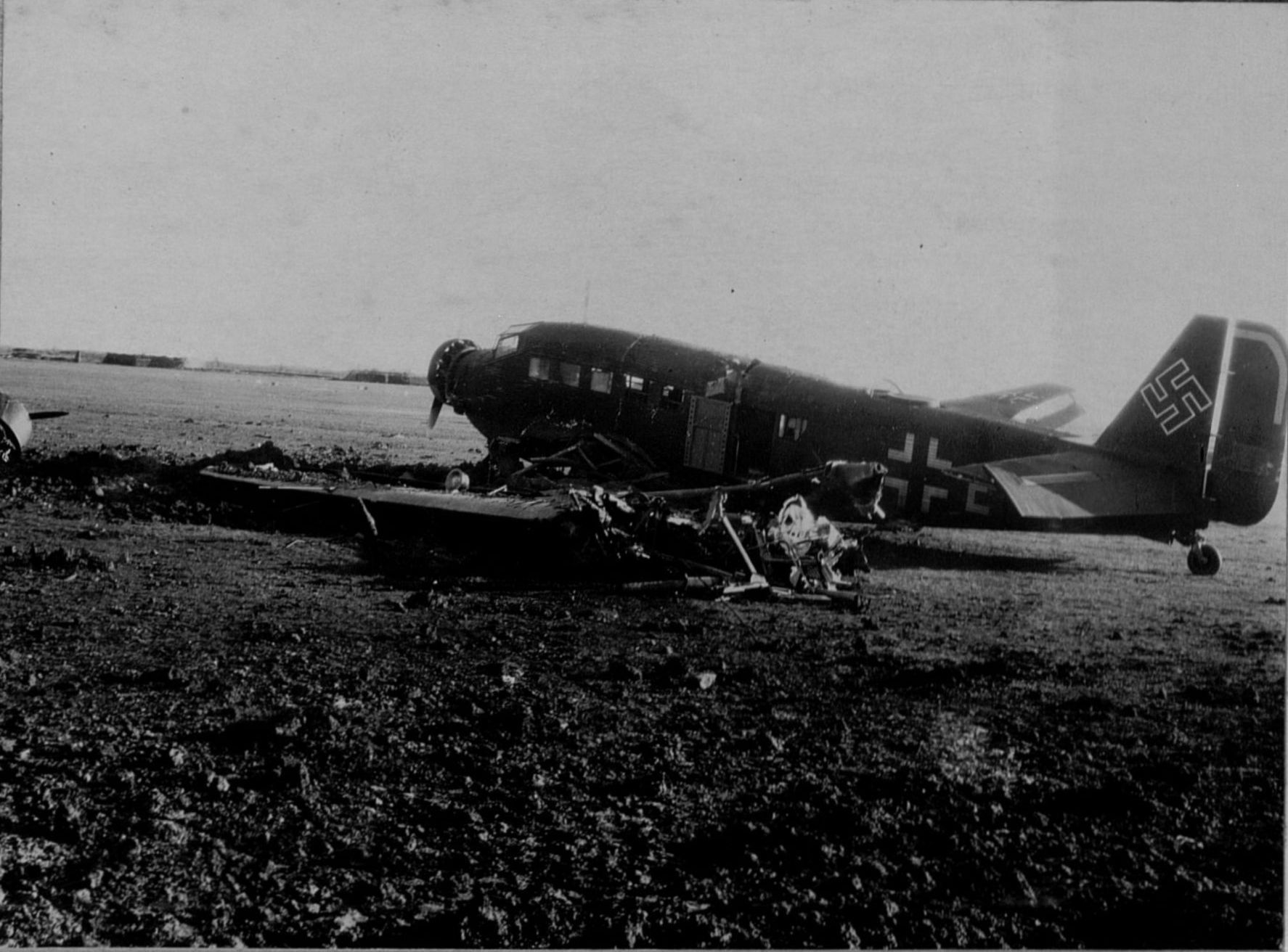Немецкий самолет Ю-52, поврежденный в результате налета на аэродром Гросс Диршкайм [1]