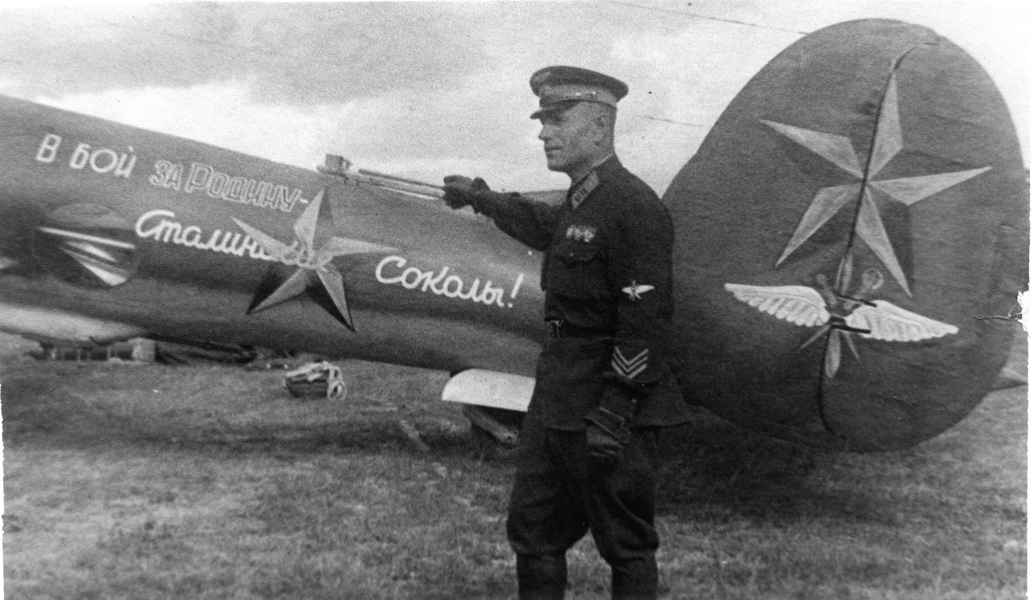 Полковник Иван Полбин возле Пе-2 с надпись «В бой за Родину — Сталинские соколы!»
