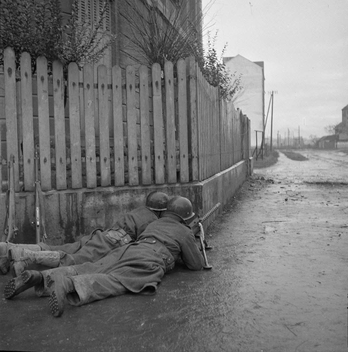 Французские солдаты с пулеметом Браунинг М1919 во время боев в предместьях Мюлуза