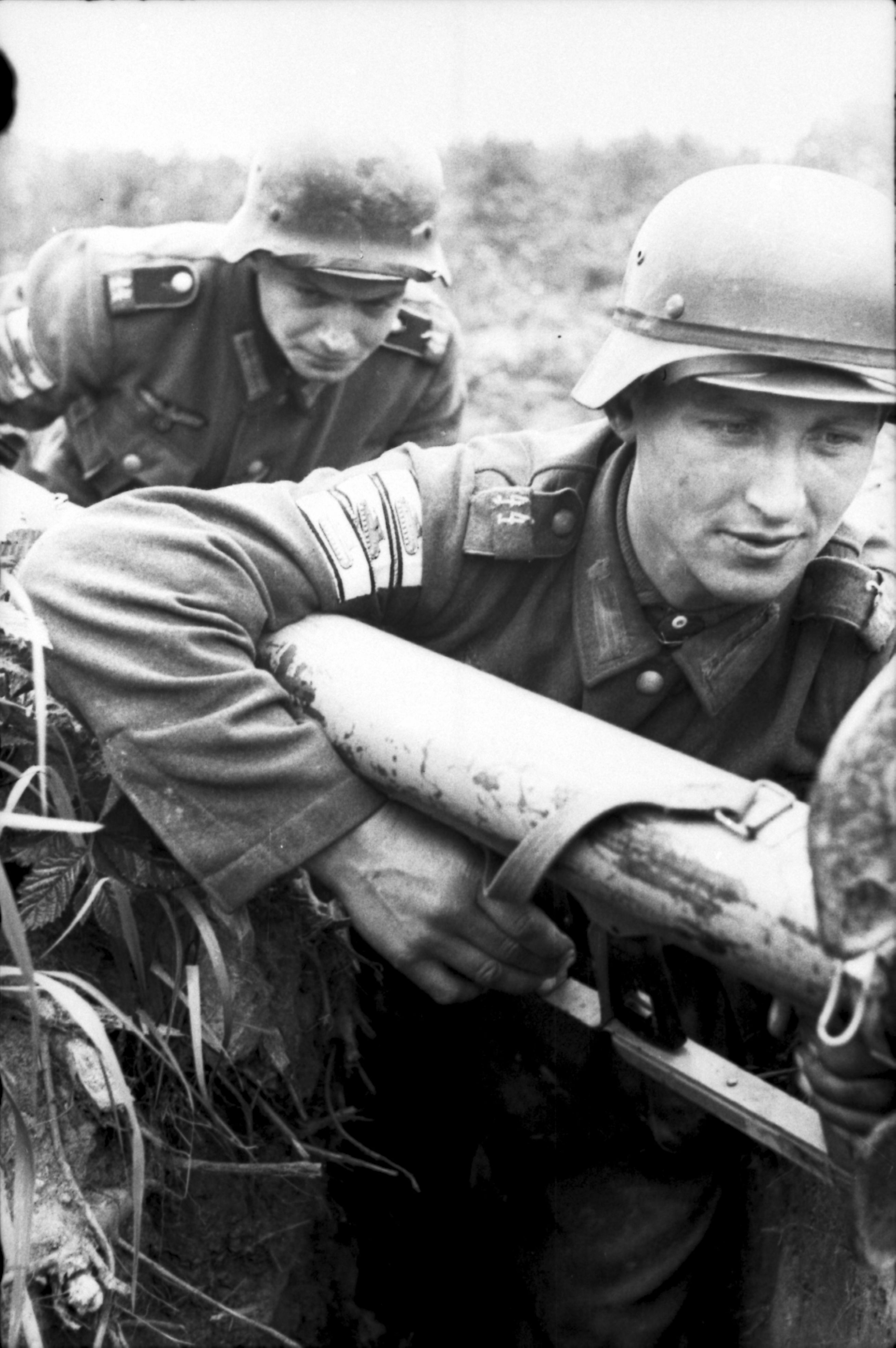 Немецкие солдаты в окопе с гранатометом «Офенрор»
