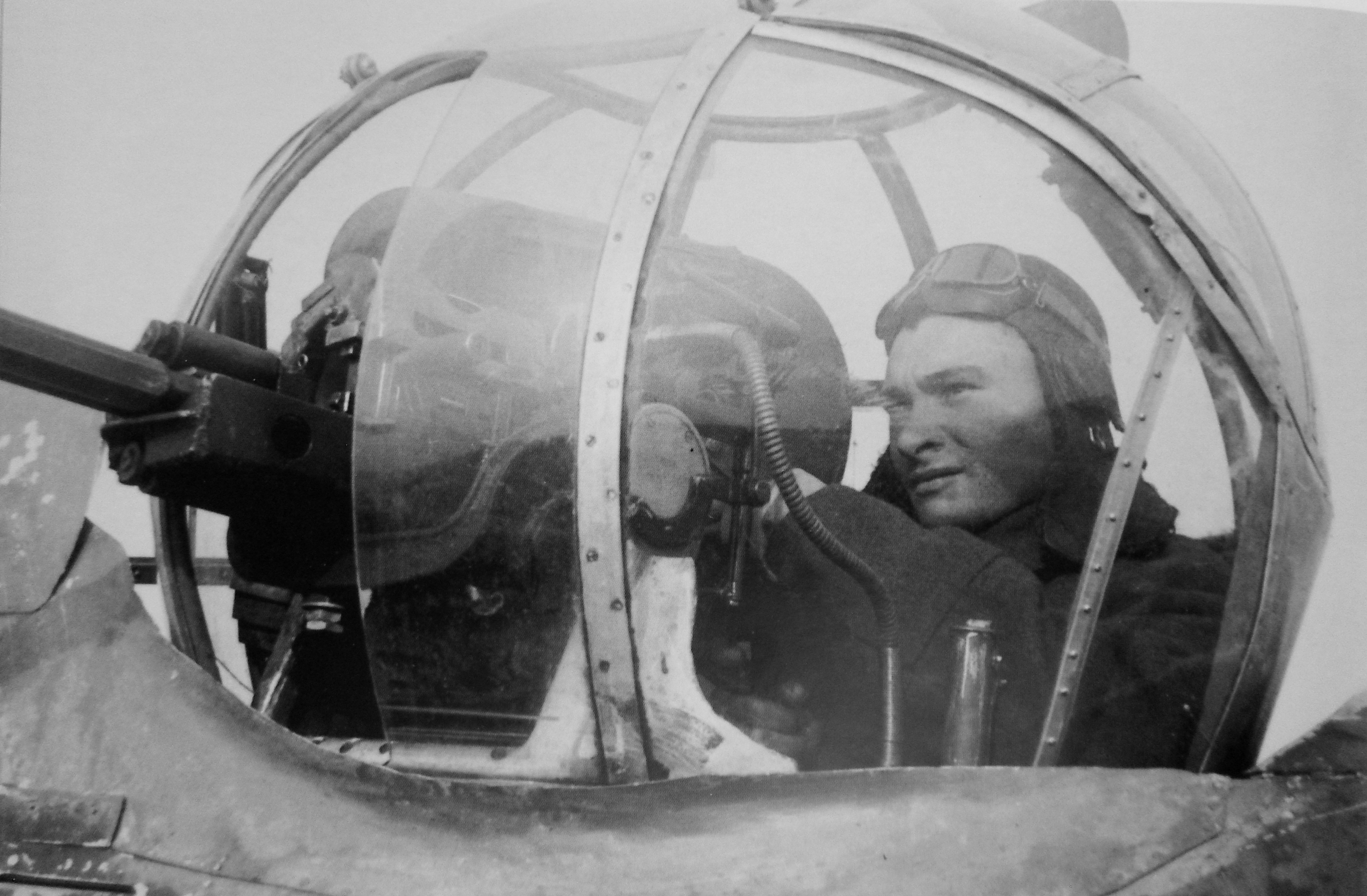 Воздушный стрелок-радист сержант Лащенов за верхней турелью бомбардировщика A-20 «Бостон»