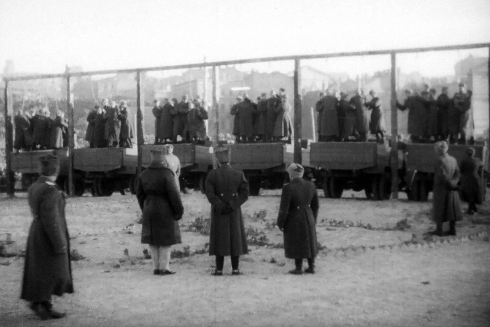 Публичная казнь немецких военных преступников в Киеве. Казнь проводилась на площади Калинина (бывшая Крещатицкая, затем Думская площадь, ныне Майдан Незалежности).